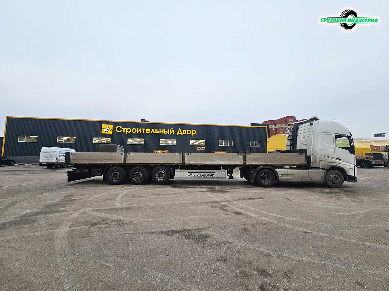 Отгрузка сцепки тягач Volvo FH 4x2 и полуприцепа бортовая платформа Steelbear PL-24B в Московскую область.